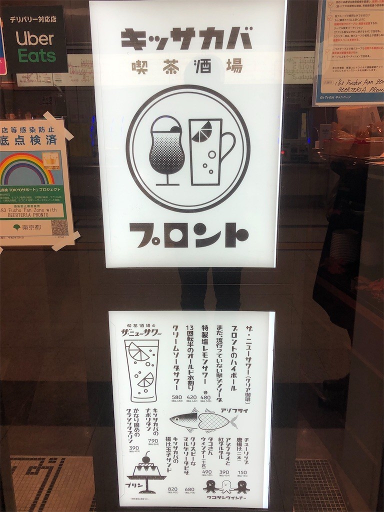 昼は普通のプロントなのですがキッサカバと以前のプロントよりもお洒落な看板になっています。